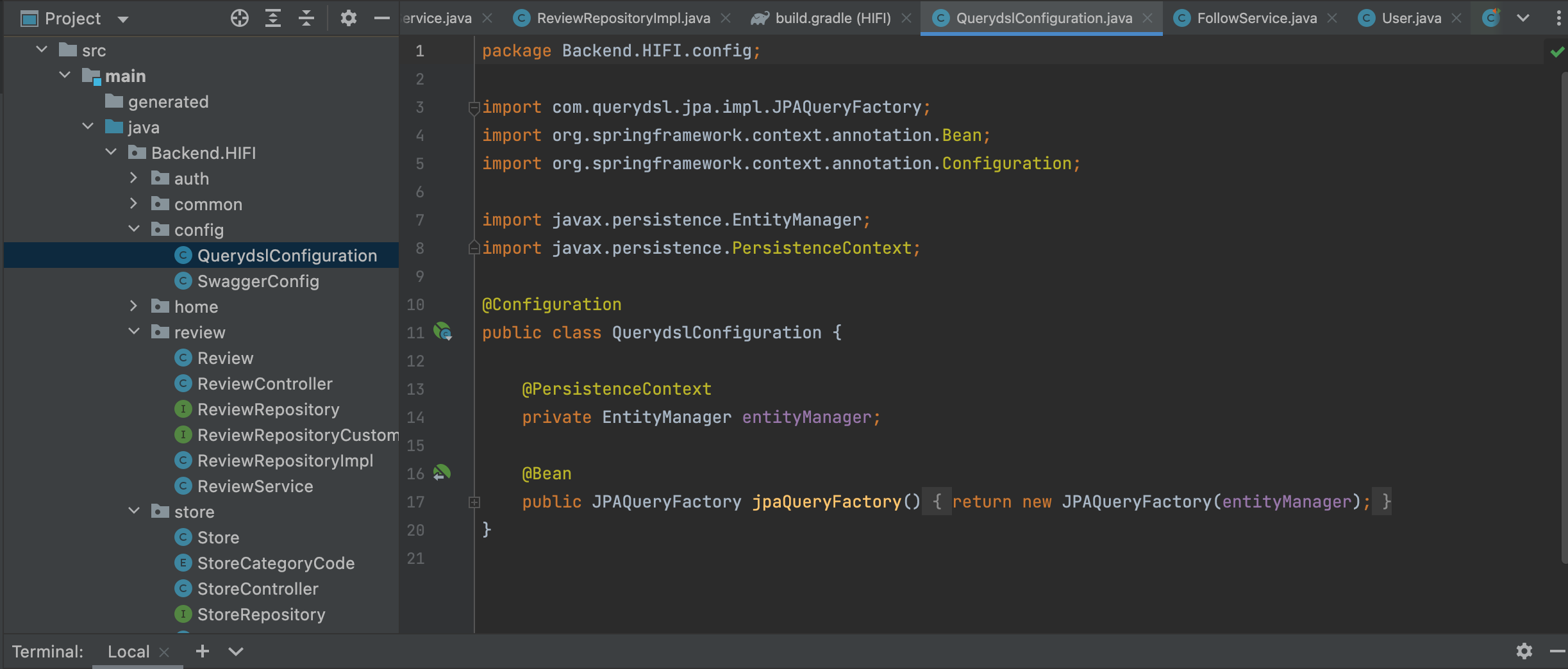 위 설정으로 해당 프로젝트는 어디에서나 JpaQueryFactory를 주입받아 Querydsl을 사용할 수 있게 된다.